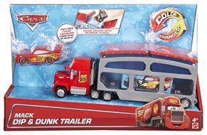 Nel film d'animazione 'Cars' di DisneyPixar, Mack è il fedele camion trasportatore sempre sorridente che non si tira mai indietro! Il rimorchio è attrezzato per trasportare il campione Saetta McQueen alla prossima gara e trasformare il suo look! Il grande rimorchio di Mack, infatti, dispone di un livello superiore che ospita due serbatoi, uno per l'acqua calda e uno per quella fredda. Per personalizzare il colore della macchinina Saetta McQueen Cambia Colore da rosso a nero, basta immergerla nell'acqua calda! Se vuoi riportarla al colore rosso originale, immergila nel serbatoio dell'acqua fredda. Il piano inferiore del rimorchio è attrezzato per trasportare il nostro campione e altri veicoli Cambia Colore alle loro prossime gare. Basta aprire il retro del rimorchio, posizionare Saetta McQueen al suo interno e richiuderlo: sarai pronto a metterti in viaggio! Il sistema di trasformazione del colore funziona con tutti i veicoli Cambia Colore. Una macchinina Saetta McQueen Cambia Colore inclusa. Gli altri veicoli sono in vendita separatamente, secondo disponibilità. Colori e decorazioni possono variare.