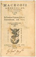 <p>In 8vo (mm. 159x95). Pp. 567, [73]. Segnatura: a-z⁸ A-R⁸. Marca tipografica al frontespizio, iniziali e illustrazioni xilografiche nel testo, marginalia a stampa. Al frontespizio annotazione manoscritta al margine inferiore (&ldquo;Jo: Fran:<sup>ci</sup> Ang:<sup>la</sup>&rdquo;), piccolo tarlo al margine superiore delle prime cc. (parzialmente intaccante il titolo al frontespizio). Lievi fioriture su alcune cc, a tratti lievemente brunito. Mezza pelle recente con fregi ornamentali e titolo in oro al dorso, taglio rosso. Nel complesso esemplare pi&ugrave; che discreto.</p> <p>Il volume contiene due delle opere pi&ugrave; significative di Macrobio, scrittore e funzionario latino del IV-V secolo d'origine africana. Nella prima, un commento neoplatonico al ciceroniano Sogno di Scipione in cui introduce le sue persuasioni filosofiche, ispirate ai princ&igrave;pi e agli ideali del neoplatonismo del tempo e discute della natura dell'anima e di Dio, dell'universo e degli astri ed espone un concetto geocentrico della terra. Nei sette libri dei Saturnali in forma di dialogo, seconda opera del volume, l'autore tratta vari interessanti argomenti tra cui l'origine delle feste in onore di Saturno, la divisione dell'anno, il culto di alcune divinit&agrave; e soprattutto l'arte e la tecnica di Virgilio; vari passaggi riguardano fisica, matematica, geografia ed astronomia. Macrobio si preoccupa soprattutto che non vada perduto il patrimonio della tradizione degli antichi, in un'epoca di incipiente decadenza della romanit&agrave;. Di particolare interesse ed importanza geografico-scientifica &egrave; il mappamondo pre-Tolemaico in xilografia, la terra &egrave; formata da quattro grandi isole con una zona torrida inagibile a separare i due emisferi, che costitu&igrave; per circa un millennio il modello geografico terrestre.</p> <p>IT\ICCU\TO0E\021870</p>