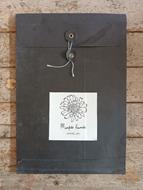 "Manifesto Animista è un progetto collettivo auto-fiorente, selvatico/lunatico, etico + estetico, eco-anarchico radicale". Cartella contenente un segnalibro, uno sticker, una cartolina, un cianotipo "Urpflanze", un poster "Guardami!" e una fanzine spillata "RINUNCIA/FIORISCI" scritta da Amparito MC.
