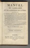 Manuel du libraire et de l'amateur de livres, contenant 1.° Un nouveau dictionnaire bibliographique, dans lequel sont indiques les livres les plus precieux et les ouvrages les plus utiles [...] 2.° Une table en forme de catalogue raisonne [...] Par J