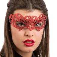 Maschera In Plastica Intagliata con Glitter Rossi In Busta con Cav.
