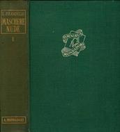 Opera incompleta, anno 1950, disponibile un tomo, nel dettaglio: vol. I. maschere nude, premessa L. Pirandello. N. pag. 665. Legatura vintage, copertina cartonata in tela verde brunita dalla luce maggiormente al dorso segnata da comuni tracce da manipolazione, timbro decorato al piatto anteriore, macchioline bianche, impronte di polvere e umido ai piatti e costa, interno integro offuscato da ossidazione, pulviscolo e ruggine ai tagli bruniti.