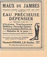 Maux de jambes, aeu précieuse Dépensier. Pharmacie Renard Paris. Advertising 1926