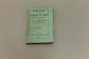 Meditazioni. Parte quinta..Milano, Editore Libraio Ernesto Oliva, 1869 - I. Quarta edizione diligentemente corretta. Parte quinta. Copertina e pp. 1-13 precariamente attaccate al corpo libro. Firma a penna in copertina, strappi sulla quarta. Pagine leggermente brunite e da rifilare. Dorso estremamente abraso.