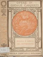 Coperta lievemente imbrunita, parzialmente distaccata alla costa e leggermente segnata da fattore tempo con irregolarità e piccole mancanze ai margini, alle punte e al dorso, legatura allentata, tagli imbruniti ed irregolari, pagine con naturale minima imbrunitura, testo completamente fruibile, volume intonso, n. 19 della collana "Opere di Giosue Carducci", presenti capilettera ornati in nero e testatine e finalini illustrati in bianco e nero, con note a piè di pagina, numero pagine 415; da segnalare: etichetta al dorso e al contropiatto anteriore di precedente biblioteca di appartenenza
