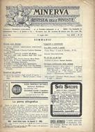Minerva Rivista Delle Riviste, periodico settimanale, direttore Federico Garlanda, Anno XX, Volume XXX n. 30 , composto da circa 20 pagine. Brossura editoriale con titoli al piatto. Segni del tempo e d'usura; copertina brunita con segni d'uso, tagli, mancanze. All'interno la legatura è allentata, le pagine brunite, alcune sono intonse.