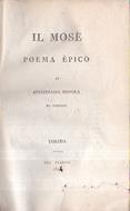 In-8°, pp. 396, (2), legatura del tempo m. pelle marrone e punte con titolo in oro su tassello rosso e filetti in oro al dorso. Tagli a spruzzo. Fresco esemplare ottimamente tenuto. Prima edizione. Poema in 10 canti in ottave di derivazione biblica. Il Robiola, poligrafo ad Arignano nel 1780 e morto a Torino nel 1854, compose delle aggiunte al commento dantesco del Venturi, un dizionario mitologico, tragedie, poesie liriche, un Dizionario universale della lingua italiana, poemi epici, delle annotazioni alla Gerusalemme Liberata, ecc. Sul Robiola, Elisa Pecciarini, Studio delle opere di Antonmaria Robiola, Firenze,1936.