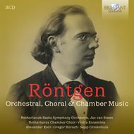 Julius Röntgen nacque a Lipsia da padre olandese, primo violino della Gewandhaus Orchester, e una madre tedesca, pianista. Si formò anch’egli come pianista ed eseguì il Secondo Concerto di Brahms sotto la direzione dello stesso compositore. Nel 1878 si trasferì ad Amsterdam, dove rimase per il resto della sua vita, diventando un membro importante della società musicale. Lo stile di Röntgen è strettamente modellato sulle opere di Johannes Brahms, suo collega e amico; ma anche Reger, Nielsen e Grieg gli furono d’ispirazione. Questo set di 2 CD presenta un ritratto musicale di Röntgen, composto di opere sinfoniche, corali e di musica da camera: splendida musica romantica, di altissima qualità artistica (non senza motivo, Brahms ha confessato di aver rubato una melodia di Röntgen per la sua Seconda Sinfonia!).