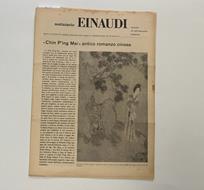 In 8 (cm 20,5 x 28), pp. (12). Alone al margine superiore della prima pagina e piccola macchietta al margine esterno. Numero del "Notiziario Einaudi", vero e proprio giornale letterario uscito dal 31 maggio 1952 al 1959. A dirigerlo Italo Calvino che verra' esplicitamente menzionato, in qualita' di direttore, a partire dal numero 7 del 1952. Dal 1952 al 1957 la periodicita' sara' mensile per divenire trimestrale fino al 1959. Fra i contributi presenti: "Chin P'ing Mei" antico romanzo cinese con un capitolo del romanzo; Klim Samghin, intellettuale russo di Leone Ginzburg (articolo precedentemente apparso nel 1931 su La cultura); Poesia e amore in Eluard. Franco Fortini ha tradotto un'ampia raccolta dell'opera poetica di Eluard dal 1917 alla morte (953). Con uno stralcio dalla prefazione del volume di Fortini; Il "Pan Tadeusz" di Mickiewicz. Nel centenario della morte del poeta nazionale polacco si ripropone alla lettura il suo romantico capolavoro, che Emilio Cecchi avvicina, per il suo incontro di realismo descrittivo e di senso del comico, alle Anime morte di Gogol (articolo di E. Cecchi); I piatti della bilancia di Renato Solmi (considerazioni su "Politica e cultura" di Norberto Bobbio e sulla posizione dell'intellettuale di fronte alla politica).