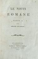 <p>Alessandro Verri (1741 - 1816) scrisse la prima parte dell'opera nel 1782, pubblicando poi l'edizione definitiva del 1804.<br />Lo scrittore trova ispirazione dalle iscrizioni sepolcrali collocate sulle tombe dell'antica famiglia patrizia romana degli Scipioni (ritrovamento avvenuto nel corso del 1780 a Roma nelle vicinanze della via Appia).<br />Nella prima parte della storia immagina di incontrare gli spiriti degli antichi romani, guidati da Cicerone, e di parlare della grandezza e della decadenza delle civilt&agrave;, di istituzioni, di leggi e di religione. Nella seconda parte, invece, abbandonando il paesaggio notturno delle rovine sulla via Appia, lo scrittore immagina di accompagnare gli spettri verso una citt&agrave; nuova - quella denominata come &ldquo;seconda Roma cristiana" - che trova il fulcro nella Basilica di San Pietro.<sup id="cite_ref-repubblica_1-1" class="reference"></sup></p> in ottavo leg. cart. coeva, titolo manoscritto al dorso, tagli spruzzati 2 voll.: pp. 202, (2); pp. 198 Buono (Good) Buon es. legatura appena un po' vissuta, note manoscritte a matita all'antiporta di entrambi i voll..