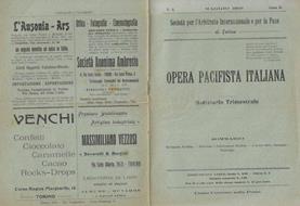 Volume in discreto stato, copertina imbrunita e sbiadita dal tempo, presenta segni di usura, aloni, strappi alle estremità, gore, testo completamente fruibile. Pagine imbrunite dal tempo, tagli fatti a mano. Società per l'Arbitato Internazionale e per la Pace. Notiziario Trimestrale, anno II- No. 4, maggio 1910. Immagini nel testo in bianco e nero. Numero pagine 8