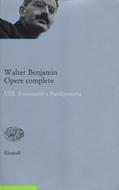 Con questo ottavo volume si conclude la pubblicazione delle "Opere complete" di Walter Benjamin, avviata da Einaudi nel 2000 con la riedizione dei "Passages" di Parigi. Al pari di quell'affascinante affresco della modernità, anche il presente volume è composto da materiale frammentario, ossia da testi, brani, appunti, aforismi, semplici schemi, che Walter Benjamin accumulò nell'arco di quasi un trentennio in funzione di quanto stava scrivendo, di quanto aveva in mente di scrivere ma poi non realizzò, o magari in vista dell'ampliamento o del rifacimento di quanto aveva già pubblicato. Un materiale quindi composito, che è stato suddiviso in due grandi gruppi, comprendenti da un lato i "Frammenti", quindi i testi relativamente autonomi non riferibili ad alcuna delle opere compiute, e dall'altro i "Paralipomena", ossia i brani che hanno invece un preciso nesso con scritti pubblicati (si pensi al grande saggio su Kafka del 1934) o comunque in via di avanzata definizione (ad esempio Infanzia berlinese). Una raccolta che proprio per la sua eterogeneità e incompletezza apre scorci interessanti sulla grande officina di un pensatore che continua a essere di straordinaria attualità.