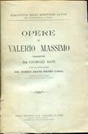 In-8°, pp. (7), colonne 807-2230 [la numerazione è per colonne invece che per pagine ed è continua rispetto al precedente volume della collana], brossura posteriore (l'edizione si presenta qui ricopertinata dal Paravia di Torino molti decenni dopo). Duplice frontespizio, latino e italiano; testo su due colonne, sempre latino e italiano. Alcuni aloni e tracce d'uso. Una mancanza alla prima carta bianca. In barbe. L'opera di Valerio Massimo ebbe straordinaria fortuna, sia presso gli antichi che in età medievale, e fu utilizzata tra gli altri da Plinio, Plutarco, Frontino, Gellio, Lattanzio e compendiata da Giulio Paride, da Ianuario Nepoziano, da Lupo di Ferrières; sul suo modello Petrarca compose i "Rerum memorandarum libri". Biblioteca degli scrittori latini col testo a fronte.