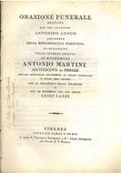 Orazione funerale recitata dal Sig. Canonico Antonio Longo arciprete della metropolitana fiorentina in occasione delle solenni esequie di monsignore Antonio Martini arcivescovo di Firenze...