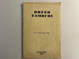 In 8 (cm 15 x 22), pp. (8). Brossura editoriale. Catalogo della mostra di opere di Orfeo Tamburi svoltasi alla Galleria Alibert di Roma nel giugno 1956. Con testo di presentazione di Fortunato Bellonzi, 4 riproduzioni in bianco/nero di opere, un ritratto fotografico dell'artista ed elenco delle 23 opere esposte.