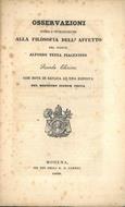 Osservazioni sopra l'introduzione alla filosofia dell'affetto del signor Alfonso Testa piacentino. Seconda edizione con note in replica ad una risposta del medesimo Signor Testa