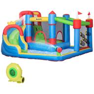 Con il suo design divertente questo castello gonfiabile Outsunny è il gioco perfetto per tutti i bambini! È composto da uno scivolo, un trampolino, una parete per arrampicata, piscina e pistola ad acqua. Per far giocare in modo sicuro i bimbi vengono forniti picchetti a terra per mantenere il castello gonfiabile stabile anche nelle giornate di vento. Accendi il gonfiatore, prepara il castello e crea un parco giochi direttamente a casa tua!