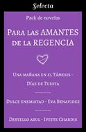 Llega lo que todas las amantes de la novela romántica de regencia esperaban. Un pack con las mejores novelas de época de Selecta para viajar y enamorarte en la Inglaterra del siglo XIX. Una mañana en el Támesis , Díaz de Tuesta James Keeling, duque de Gysforth, ha hecho una apuesta con sus amigos, en Brooks's: dará un paseo matinal en barca por el Támesis con una dama totalmente desconocida, alguien a quien no haya visto jamás, y con la que no haya hablado nunca. Lady Bethany Howland, hija del antiguo conde de Saxonshare, sabe que está abocada a la ruina más completa. Su primo y tutor está dilapidando la fortuna familiar con su enfermiza afición al juego y la mala vida, y ella no tiene modo de impedirlo. Atrapada por los convencionalismos de la sociedad en la que vive, su única ilusión es el romántico enamoramiento que siente por el duque de Gysforth, al que solo ha visto de lejos... El hombre que, una mañana en el Támesis, le romperá el corazón. --------------------------- Dulce enemistad, Eva Benavídez Lady Elizabeth Albrigth está de vuelta en Londres después de haber crecido en Francia tras el fallecimiento de su madre. Recién presentada en sociedad, su padre, el marqués de Arden, espera que consiga un buen matrimonio. Sin embargo, ella no tiene intención de elegir un esposo, ni mucho menos de casarse. Lord Nicholas Bladeston, duque de Stanton, es famoso por ser un soltero empedernido. Resuelto a mantenerse lejos de los bailes y eventos sociales, evita madres casamenteras y debutantes vírgenes. Pero cuando un asesino comienza a cobrarse victimas aristocráticas, le es asignada una misión real: deberá aventurarse en los salones londinenses para intentar descubrir al homicida y posible traidor al rey, y así frustrar sus planes. --------------------------- Destello azul, Ivette Chardis June, hija del conde de Belford, y Elric Glover, ladrón y estafador, criado en los bajos fondos de Londres, se conocen durante la peor noche de sus vidas. Los dos son testigos del asesinato del conde que esconde una joya de gran valor: el diamante azul. El mismo que llevó Maria Antonieta antes de morir guillotinada. Deciden asociarse para buscar el diamante, y lo que en principio solo se trataba de formar equipo queda en entredicho cuando sus vidas se entrelazan como los hilos de una telaraña.