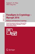 This book constitutes the refereed post-conference proceedings of the Second International Conference on Cryptology and Malicious Security, held in Kuala Lumpur, Malaysia, December 1-2, 2016. The 26 revised full papers, two short papers and two keynotes presented were carefully reviewed and selected from 51 submissions. The papers are organized in topical sections on revisiting tradition; different paradigms; cryptofication; malicious cryptography; advances in cryptanalysis; primitives and features; cryptanalysis correspondence.