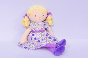 Peggy è una bambola di stoffa, fatta a mano, in cotone, morbida e adatta dalla nascita ma con una personalità unica che piacerà anche alle bambine e alle adolescenti. La collezione vuole soddisfare le diverse esigenze delle bimbe durante la crescita, dal gioco immaginario al comfort di un giocattolo per la prima infanzia. Queste bambole diventeranno la compagna preferita per la crescita. Peggy misura 40cm, ha i capelli biondissimi e indossa un bel vestito floreale rosa e lilla su sfondo bianco. Le bambole di stoffa Bonikka sono fatte a mano in Sri Lanka. Vengono confezionate con materiali naturali e di riciclo, sono realizzate in modo eticamente responsabile e interamente a livello locale. Le bambole sono sicure anche per neonati e soddisfano tutti i moderni standard di qualità. Regala una bambola Bonikka: un dono che durerà tutta una vita.'