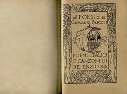 Poesie di Giovanni Pascoli. Volume X Rilegatura non editoriale in mezza pelle, con nervi e incisioni al dorso. Conservate le copertine editoriali 8vo. pp. 230. . Molto buono (Very Good). Fioriture alle prime e ultime pagine (Yellowing of first pages). . .