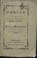 In-16°, pp. 36, (2), brossura editoriale verdina con titolo entro bordura ornamentale. Una goretta al piatto. Ottimo stato. Unica edizione, rara. Il Malaspina, nato a Parma di umili origini, svolse in gioventù la professione di facchino di dogana nella città natia, da cui la denominazione con cui scelse di accompagnare la presente raccolta. Il brillante ingegno e il precoce amore agli studi lo fecero notare da Pietro Giordani, che prese a proteggerlo insieme ad altri studiosi come il Pezzana che ne favorì l'inserimento come custode della biblioteca municipale. Il frutto più copiscuo delle sue ricerche è un pregevole dizionario del dialetto parmense, ma egli fu autore anche di varie guide e opere storiche relative alla sua città.