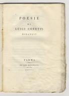 Parma, co' tipi Bodoniani, 1801, in-16, brossura muta ottocentesca (ma il nome dell'autore è manoscritto a penna sulla copertina anteriore), pp. [4], 49, [3], la prima e l'ultima carta bianche. Brooks, n. 804. Ondulazioni e lievi aloni dovuti a vecchia umidità.