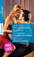 Pour quelques nuits de passion…, Helen Brooks Alors qu’elle espérait passer un week-end relaxant à la campagne, une tempête de neige contraint Rachel à séjourner dans une auberge isolée, en compagnie de Zac Lawson, un homme qu’elle connait à peine. Et à partager sa chambre avec lui… L'héritage des Carducci, Chantelle Shaw Lizzie sent la panique l’envahir lorsqu’elle comprend que Raul Carducci, venu d’Angleterre pour les rencontrer, elle et son petit frère Gino, exige qu’ils viennent vivre avec lui en Italie. Elle sait pourtant qu’elle ne peut s’opposer à sa volonté. Si elle refuse, il finira par découvrir qu’elle n’est pas la vraie mère de Gino, et n’hésitera pas à tout faire pour lui retirer la garde du petit garçon… L'amant de Madrid, Kim Lawrence Alors qu’elle se trouve à l’aéroport de Madrid, Megan croise Emilio Rios, un arrogant play-boy pour lequel elle a toujours éprouvé un mélange d’antipathie et de désir, et qui, en retour, lui a toujours témoigné le plus grand mépris. Et voilà que, à sa grande stupeur, Emilio s’approche d’elle et l’embrasse avec passion. Elle le comprend très vite : il ne s’agit pour Emilio que d’un jeu, mais pourquoi ce baiser la laisse-t-elle aussi troublée ?