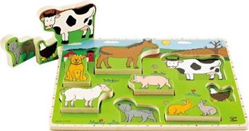 30x25 cm - in legno compensato di betulla, gli animali oltre che a incastrarsi come in un normale puzzle, possono stare in piedi ed essere quindi utilizzati per altri giochi, per stimolare il riconoscimento delle forme, la risoluzione dei problemi e la creatività nei più piccoli, da 24 mesi