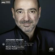 Two works which present two opposite faces of Brahms: the ‘academic' and the ‘progressive'. The Academic Overture is based on student songs. Schoenberg's orchestral arrangements of Brahms' Piano Quartet is both a late-romantic and a modern piece. Thoroughly engaging accounts by two brand new interpreters in the music industry: the Wuerth Philharmonic and its chief conductor, Claudio Vandelli.