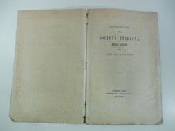 In 8 (cm 16 x 25), pp. 75 + (1b). Pagine brunite. Brossura rifatta con carta d'epoca. Pubblicazione della Societa' italiana delle Scienze dei Quaranta fondata per la promozione dello studio delle scienze in Italia dal matematico Anton Maria Lorgna nel 1782. Nacque una querelle quando il Ministero della Pubblica Istruzione decise che la Societa' dove sottostare, appunto, al Ministero e cessare di essere ente autonomo che rispondeva solamente al proprio statuto interno.