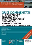 Il testo Quiz Commentati su competenze pedagogiche, psicopedagogiche e didattico metodologiche costituisce un’ampia raccolta di test commentati per coloro che devono prepararsi a sostenere la prova scritta del concorso scuola. (leggi gli articoli sui concorsi sul nostro Blog) Il libro Quiz per la prova scritta del Concorso Scuola, in aderenza dal programma d’esame del concorso a cattedra, è suddiviso in quattro parti: Competenze pedagogiche e psicopedagogiche compresi gli aspetti relativi all’inclusione Competenze didattico- metodologie compresi gli aspetti relativi alla valutazione Informatica Inglese I quesiti e i relativi commenti su competenze pedagogiche, psicopedagogiche e didattico metodologiche sono stati selezionati in modo da costituire un valido ripasso degli argomenti che più frequentemente rappresentano oggetto delle prove ma anche uno spunto per l’approfondimento di tematiche particolari e attuali. Tra le espansioni online sono disponibili le parti teoriche di inglese e informatica, nonché un software con più di 3000 quiz, per esercitarsi con infinite simulazioni. Per completare la preparazione al concorso scuola, si consigliano i seguenti libri e manuali: Manuale per il concorso scuola su competenze pedagogiche, psicopedagogiche e didattico metodologiche (526/CF); Legislazione Scolastica (526/C); Manuale delle Metodologie e Tecnologie Didattiche (526/B); La prova di Inglese per i concorsi nella scuola (526/4); Le Competenze Informatiche del Docente (526/3).