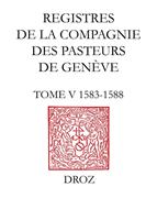 S’il fallait donner un titre à ce cinquième tome des Registres de la Compagnie des pasteurs, « Genève entre deux guerres » serait certainement le plus adapté. Le tome précédent s’achevait, en effet, en 1582 sur des bruits d’armes dûs à la guerre dite de Raconis, alors que le tome six débutera par la guerre de 1589 entre Genève et la Savoie. Mais 1583-1588 c’est aussi « Genève et les guerres », celle de la Ligue ou celle dite des trois Henri. Dans la ville, de quelque guerre qu’il s’agisse, c’est un nouvel afflux de réfugiés, c’est un blocus économique et la disette, ce sont des jeûnes ou des actions de grâces suivant la tournure que prennent les événements.