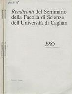 Anno 1985 completo, composto da due fascicoli, Fascicolo 1 e Fascicolo 2, rispettivamente di 79 e 163 pagine, Volume LV del periodico semestrale Rendiconti del Seminario della Facoltà di Scienze dell'Università di Cagliari, direttore: Giuseppe Aymerich. Buono stato, coperta in cartoncino, su piatto anteriore catalogazione bibliotecaria manoscritta, bordo poco sfregato, strappetto, tagli appena ambrati, cerniera stretta, pagine in ottimo stato. Presentano timbro ex biblioteca su frontespizio e sul margine di piede di qualche pagina, anche timbro numerale sulla I.a pagina dell'Indice del Fascicolo 1, nel Fascicolo 1 si trova anche fascicolo intonso con frontespizio ed Indice del Volume LV, 1985. Lingue: Italiano, Inglese, Francese. Numero Pagine 242