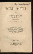 Ricordi politici [...] pubblicati per cura di Cesare Paoli. Cenni biografici. Introduzione. Prima Segnatura del Passaporto. Dimostrazione Romilli. Seconda Segnatura del Passaporto. L'Opinione. Te-Deum. La Guardia Civica. Dimostrazione Inglese. Da Tor