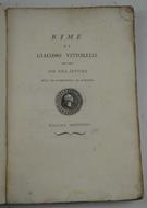 Cm. 23, pp. 190. Con il ritratto dell'autore entro ovale al frontespizio, una tavola f.t. ed alcune belle testate finemente incise. Legatura coeva in cartoncino decorato con dorso rinforzato nell'800. Esemplare genuino ed in buono stato di conservazione. Edizione remondiniana nitidamente impressa delle liriche arcadi del Vittorelli. Le pp. 1-75 sono occupate da una lunga lettera del Roberti al poeta; a p. 76, un epigramma latino del Boscovich. Si segnala inoltre il lungo poemetto giocoso: "I maccheroni".