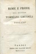 Parigi, Gio. Claudio Molini, In-16° (186x111mm), pp. (10), 180 + XI di "Notizie per la vita del dottor Tommaso Crudeli" (tali notizie biografiche non sempre si trovano unitamente al volume). Legatura coeva m. pelle marrone con fregi in oro e titolo in oro