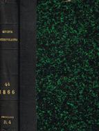 Volume 44 completo e composto da 3 fascicoli relativi a gennaio, febbraio e marzo 1866, numerazione continua, mantiene la copertina originale solo il primo fascicolo peraltro molto brunita dal tempo, quasi bruciata, pagine naturalmente ingiallite e con sporadica fioritura, sono presenti anche alcune pagine relative all'annuario bibliografico, rilegatura rigida, in mezza tela, piatti cartonati e con segni d'urtoi ai bordi superiori, dorso con titoli d'oro, strappi al piede ed alla cima. Numero pagine 400