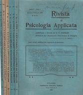 Rivista di Psicologia applicata, anno V, 1909. Presenti volume di gennaio-febbraio numero 1, marzo-aprile numero 2, maggio-giugno numero 3, luglio-agosto numero 4, settembre-ottobre numero 5, novembre-dicembre numero 6. Brossure in cartoncino in buone condizioni. Interno integro, cerniera salda, pagine intonse con macchiette d'umidità. Volume numero 4 scolorito ai margini, tracce di matita nel piatto anteriore del volume numero 1. Numero pagine 536