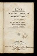 Roma compiutamente descritta in sette giornate per comodo dè forestieri con un appendice dè contorni e dell'indicazione del viaggio da Roma a Napoli. Terza edizione originale accresciuta e migliorata