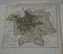 Cm. 17, pp. xxxii (1) 382. Con 25 belle tavole f.t. incise in rame fra cui la pianta (ripiegata). Legatura del tempo in mezza pelle, dorso liscio con titoli e fregi in oro. Buona conservazione.
