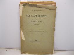 In 8, pp. 240 con ill. e foto in b/n n.t. Br. ed. con d. rifatto. Srappetti e mancanze al p. ant. Resoconto degli scavi nella zona del Foro Romano: Sulla Velia, Sacra via, Necropoli arcaica, Regia, tempio di Vesta e casa delle Vestali, Arco di Augusto e tempio di Cesare, Basilica Emilia, Area del Foro, Comizio, Rostri e Volcanale, Vico Tusco e tempio dei Castori, Sacrario di Giuturna, S. Maria Antiqua.