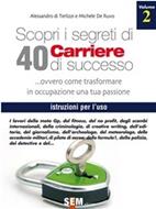Il secondo volume di “Scopri i segreti di 40 carriere di successo” presenta gli aspetti più nascosti e quelli più esaltanti delle professioni della Moto Gp, del fitness, del no profit, degli scambi internazionali, della criminologia, del creative writing, dell’editoria, del giornalismo, dell’archeologo, del meteorologo, delle accademie militari, della polizia, di pilota d'aereo, della formula 1, della polizia, del detective. Sotto la lente ci sono percorsi di formazioni e opportunità da cogliere, senza alcuna reticenza. Una vera radiografia in cui vengono messi in evidenza strutture eccellenti e apparati che avrebbero bisogno di curare i propri acciacchi. Come il primo, anche il secondo volume orienta i giovani a una scelta consapevole e stimola i meno giovani, quelli che hanno già esperienza e non sono soddisfatti, a tentare nuove strade. Negli anni Sessanta del secolo scorso, si sognava di diventare astronauti, negli anni Ottanta medici chirurghi per operare a cuore aperto (Barnard docet), nei Novanta tutti iscritti a legge per combattere la corruzione di Mani pulite. La scelta di una professione non può e non deve essere dettata dalle mode. È una decisione che ha bisogno di abbinare aspirazioni a un sano pragmatismo, senza rinunciare alle une in favore dell’altro.