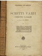2 voll. in-8°, pp. XXV, 378; 352, (2); brossure editoriali. Ritratto del De Sanctis all'antiporta del primo vol. Ottima copia in parte intonsa e protetta da velina. Prima edizione, postuma, curata dal Croce. Saggi, fra l'altro, su Manzoni, la poesia cavalleresca italiana, Racine, Machiavelli, Zola, Settembrini, Leopardi, il Darwinismo nell'arte, ecc.