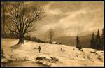 Cartolina color seppia raffigurante un paesaggio innevato