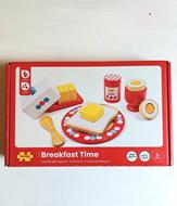 Il buongiorno si vede dalla colazione. Ho cucinato uova alla coque e preparato pane, burro e marmellata.... Forza alzatevi dal letto, è tutto pronto! Un set di legno con elementi che si tagliano grazie al velcro che li divide....