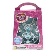 Set con corona, collana, orecchini e anello con scintillanti pietre.