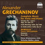 Alexander Grechaninov assistette a parecchi cambiamenti epocali nel corso della sua lunga vita, fuggendo dalla Russia sconvolta dalla Rivoluzione d’Ottobre per rifugiarsi prima a Parigi e poi negli Stati Uniti. Esponente di spicco della seconda generazione di compositori nazionalisti e allievo di Rimsky-Korsakov e di Taneyev, Grechaninov rimase sempre fedele al viscerale lirismo russo. Le opere per viola e pianoforte presentate in questo disco sono tanto gradevoli quanto sconosciute, molte sono tuttora inedite e due sono state trascritte per viola da Elena Artanomova. Questo disco è stato pubblicato in occasione del 150° anniversario della nascita di Grechaninov (ebbene sì, il 1864 non è solo l’anno di Richard Strauss…) ed è dedicato alla memoria di Alexander Ivashkin (1948-2014), violoncellista e studioso di grande valore che ha portato avanti le ricerche che hanno consentito di realizzare questa registrazione.