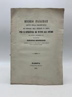 In 4 (cm 21,5 x 31), pp. 43 + (1 bianca). Brossura rifatta con carta d'epoca. Discorso di Giuseppe Corneliani, professore di clinica medica, tenuto in occasione dell'inaugurazione dell'anno accademico dell'Universita' di Padova nel novembre 1847. Il discorso ha per titolo "Sopra alcune utopie medico-filosofiche nate nel secolo XVII".