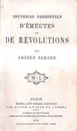 Edizione originale francese / Original French edition - Volume cartonato, legatura amatoriale in tela blu, titoli in oro al dorso, 334 pagine. Raccolta di memorie relative ai moti rivoluzionari degli anni 1830, 1848, 1870 e 1871. Qualche fioritura alle carte, modesti segni del tempo, nel complesso buona copia..